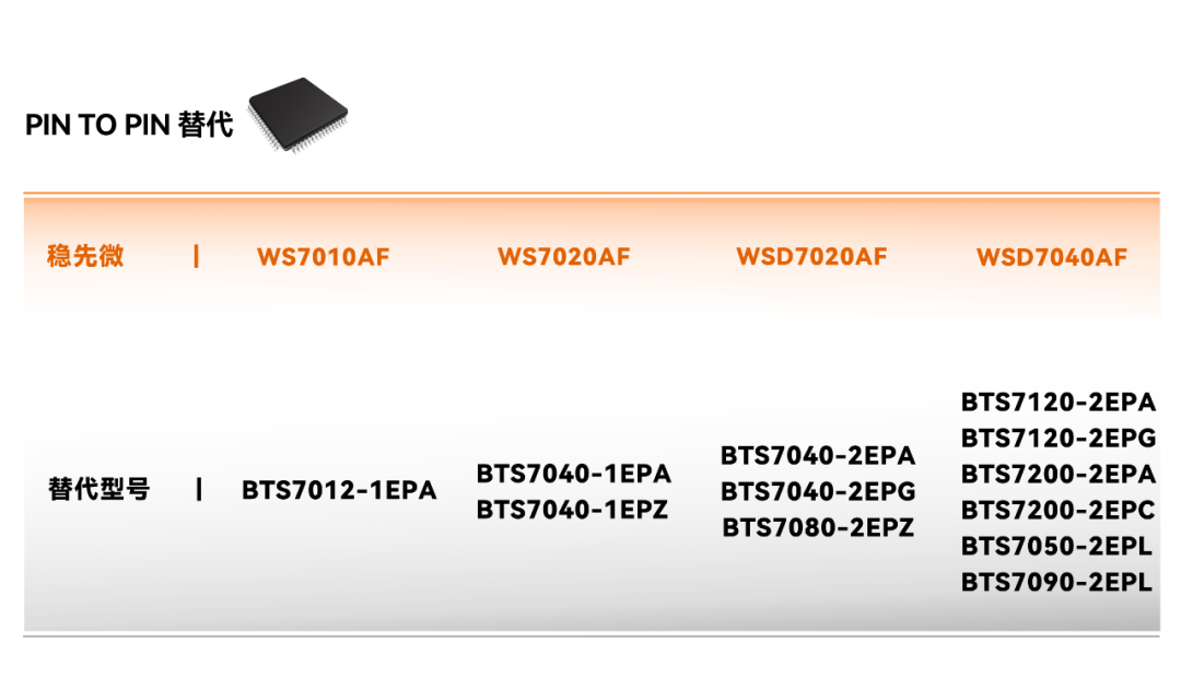 新產(chǎn)品采用單芯片設(shè)計,具有高可靠、高性能、高穩(wěn)定的產(chǎn)品特性并適用于12V汽車平臺。與WS7xxxAD系列不同之處是WS7xxxAF采用了DFN5×6-14L封裝,擴大了該系列產(chǎn)品的兼容廣度,獲得了與會觀眾的廣泛關(guān)注和熱烈反響。