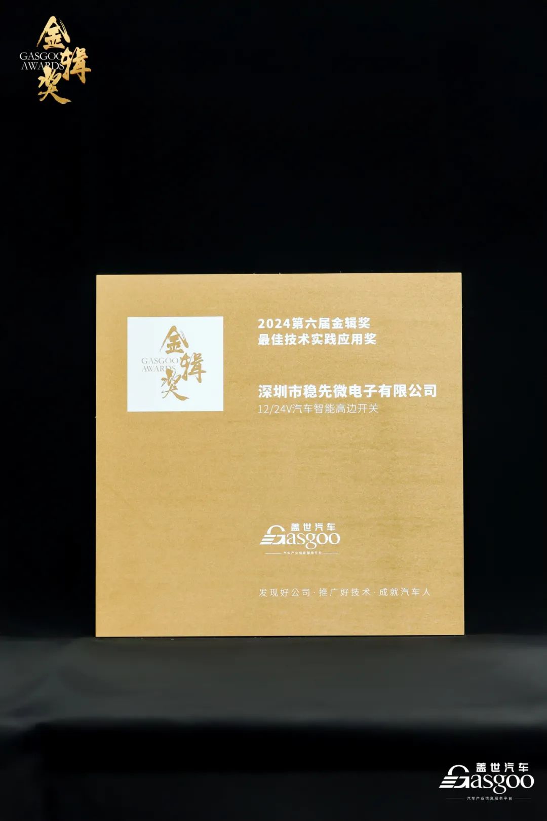 經(jīng)組委會對企業(yè)實(shí)踐方案的技術(shù)特點(diǎn)、市場及技術(shù)應(yīng)用的差異化優(yōu)勢進(jìn)行多維度評審,在頒獎典禮上,穩(wěn)先微12/24V車規(guī)級智能高邊開關(guān)系列脫穎而出,成功摘取“2024蓋世汽車金輯獎——最佳技術(shù)實(shí)踐應(yīng)用獎”。
